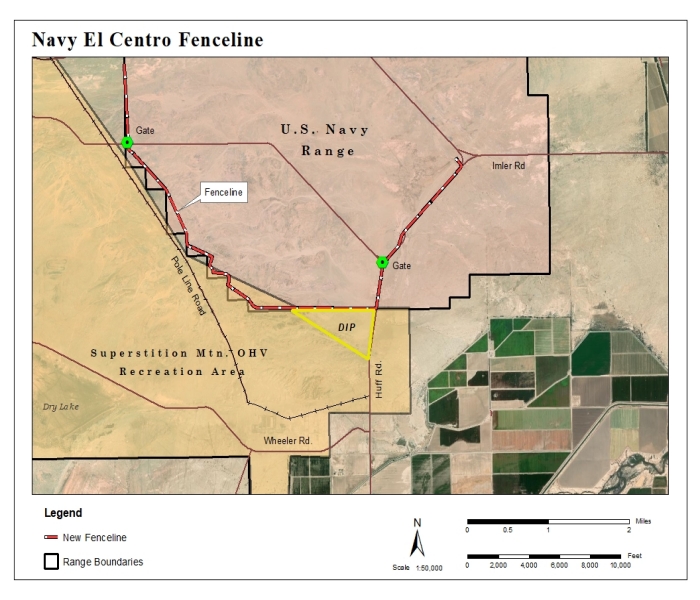 As you may be aware, the Navy has constructed a fencing project along the Superstition Mountain OHV Open Area and Rage boundary in the area known as the "DIP." The installation is sharing details of the project and would appreciate your cooperation getting the message out.