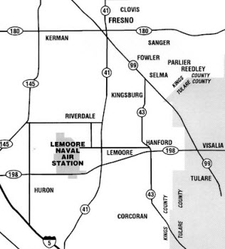 By Auto – Naval Air Station Lemoore is located on Highway 198, 19 miles east of Interstate 5 or 30 miles west of Highway 99. Both highways provide easy access to the air station.
